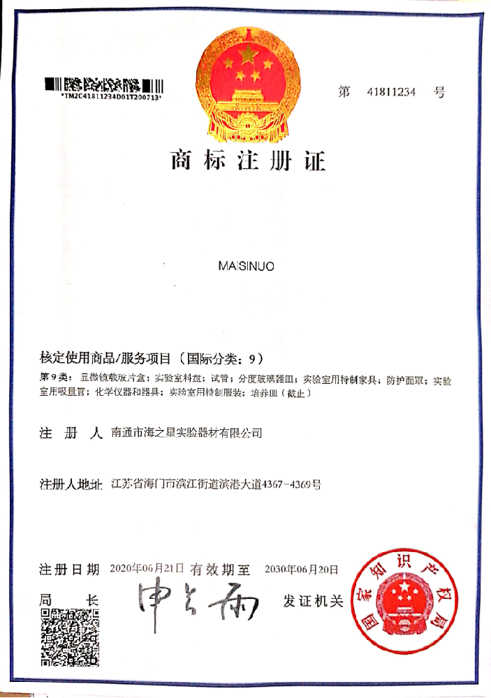 公司因發(fā)展需要,注冊麥斯諾英文商標(biāo)——“Maisinuo”實(shí)驗(yàn)室,